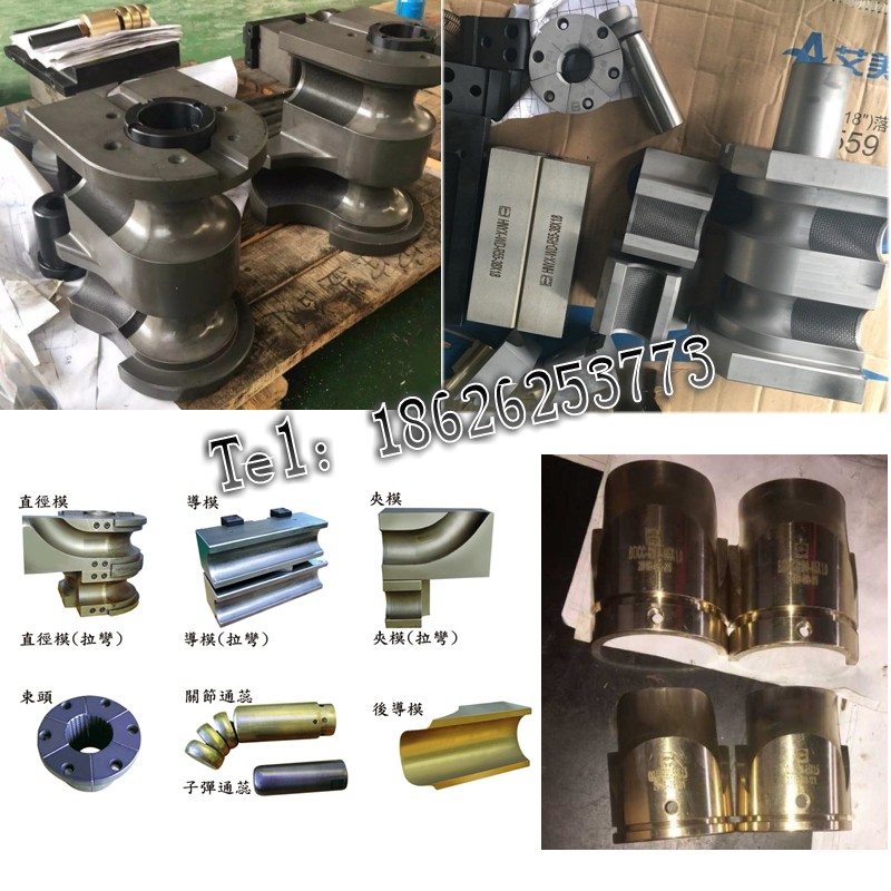彎管機(jī)在管材彎曲時(shí),彎模能防止管子扁平,并給出一個(gè)彎曲半徑,以使管子彎曲成形。彎模分組合式和整體式兩種。組合式彎模制造方便,但使用起來,由于彎模和鑲塊不是組合加工的,其半徑槽不對(duì)中,或高低不平、不相切,或有間隙,使用感到不方便。為了避免在接縫處產(chǎn)生壓痕,方便現(xiàn)場(chǎng)使用,采用整體彎模為好,但整體彎模加工起來困難。