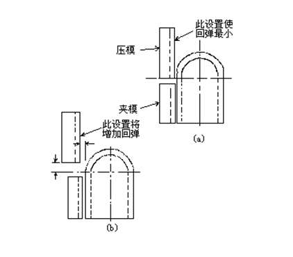 壓模槽的直徑為稍大于所彎管子的外徑。它兩端之間的厚度差異必須小于.0005。厚度的變化會(huì)導(dǎo)致夾住或突然前沖。用優(yōu)質(zhì)合適的工裝,只需要用很小的壓力。用一根實(shí)心棒可以幫助設(shè)置壓模。松開固定裝置直到調(diào)節(jié)螺栓可自由轉(zhuǎn)動(dòng),所要做的是根據(jù)實(shí)心棒調(diào)節(jié)壓模螺栓并保持壓力。壓模壓力過大將增加管子變薄,在管子上產(chǎn)生劃痕并引起回彈。