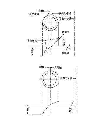 要減少變薄,有必要將中軸向彎的外側(cè)移。如中軸與外壁重合就不會(huì)變薄,而內(nèi)側(cè)會(huì)變厚。一種方法是在彎管前先將管子壓縮;這將調(diào)整受壓變形如圖13*。